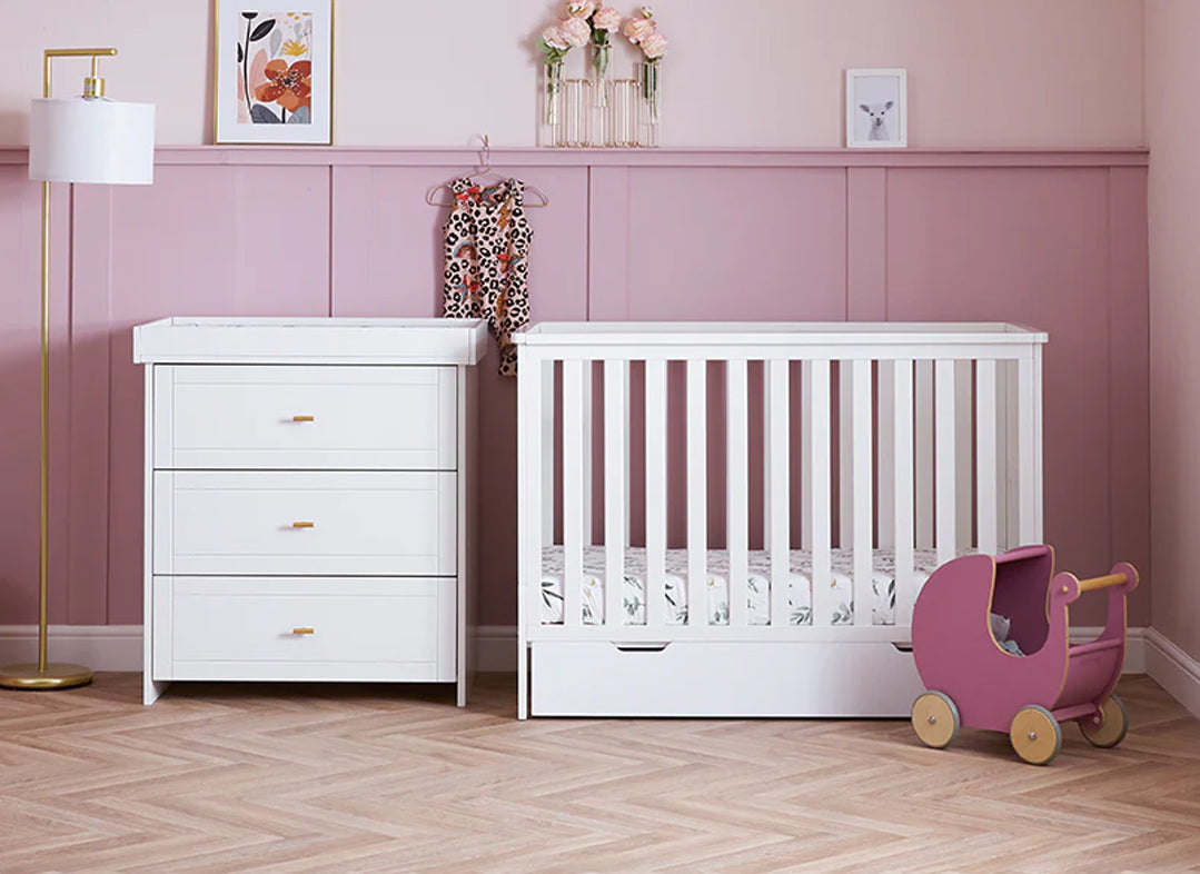 The Obaby Evie Mini collection is perfect for parents who want to blend contemporary features, without compromising on practicality.