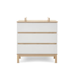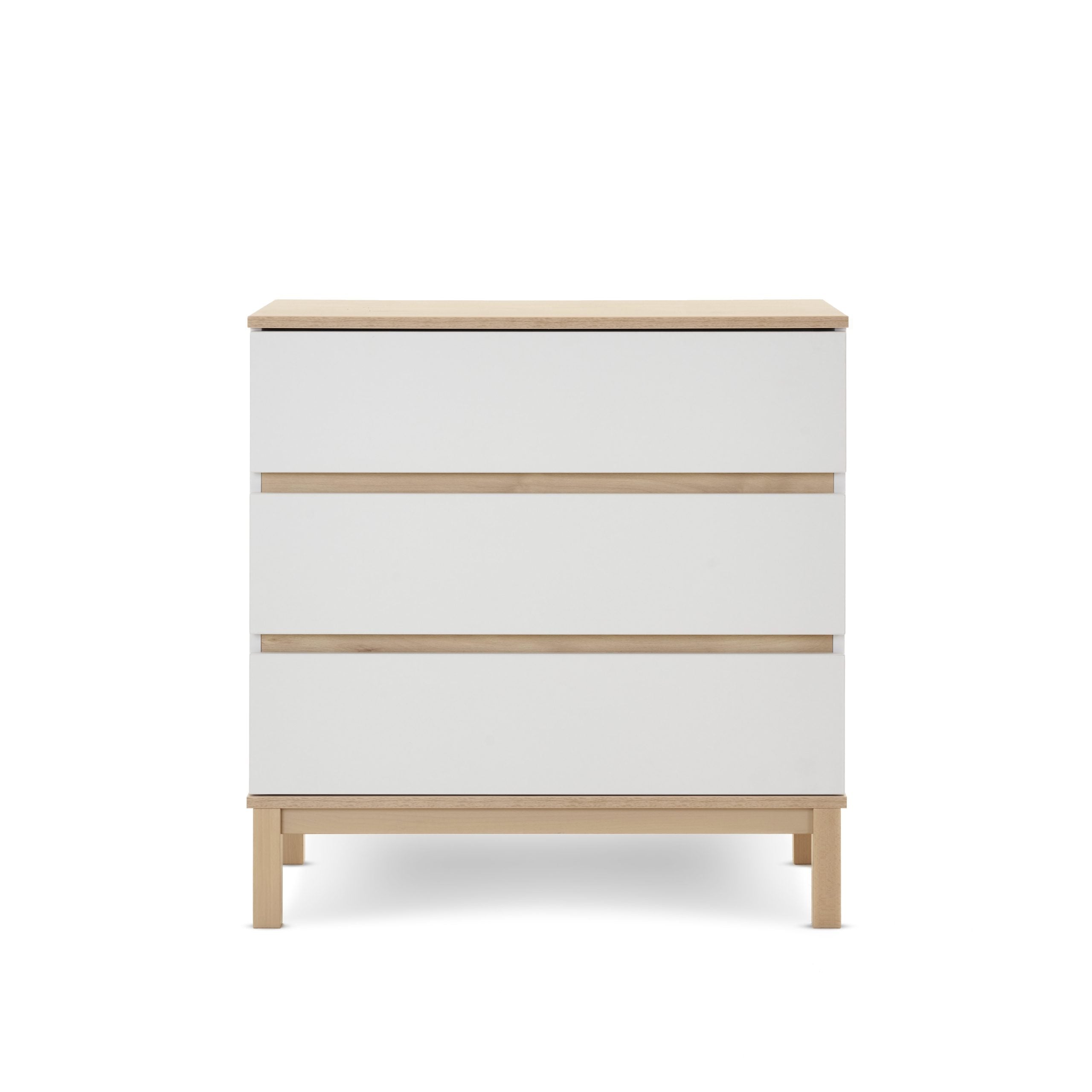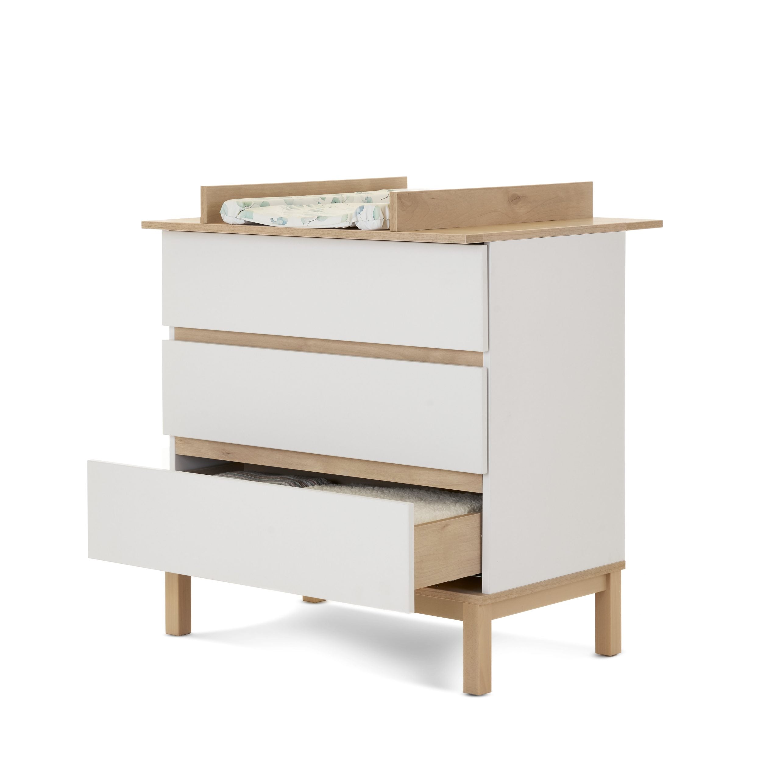 The three large drawers fronted by a chic no-handle design provide plenty of storage. While the clever positioning of the changing top means you are stood face on to baby, allowing plenty of precious one to one time.