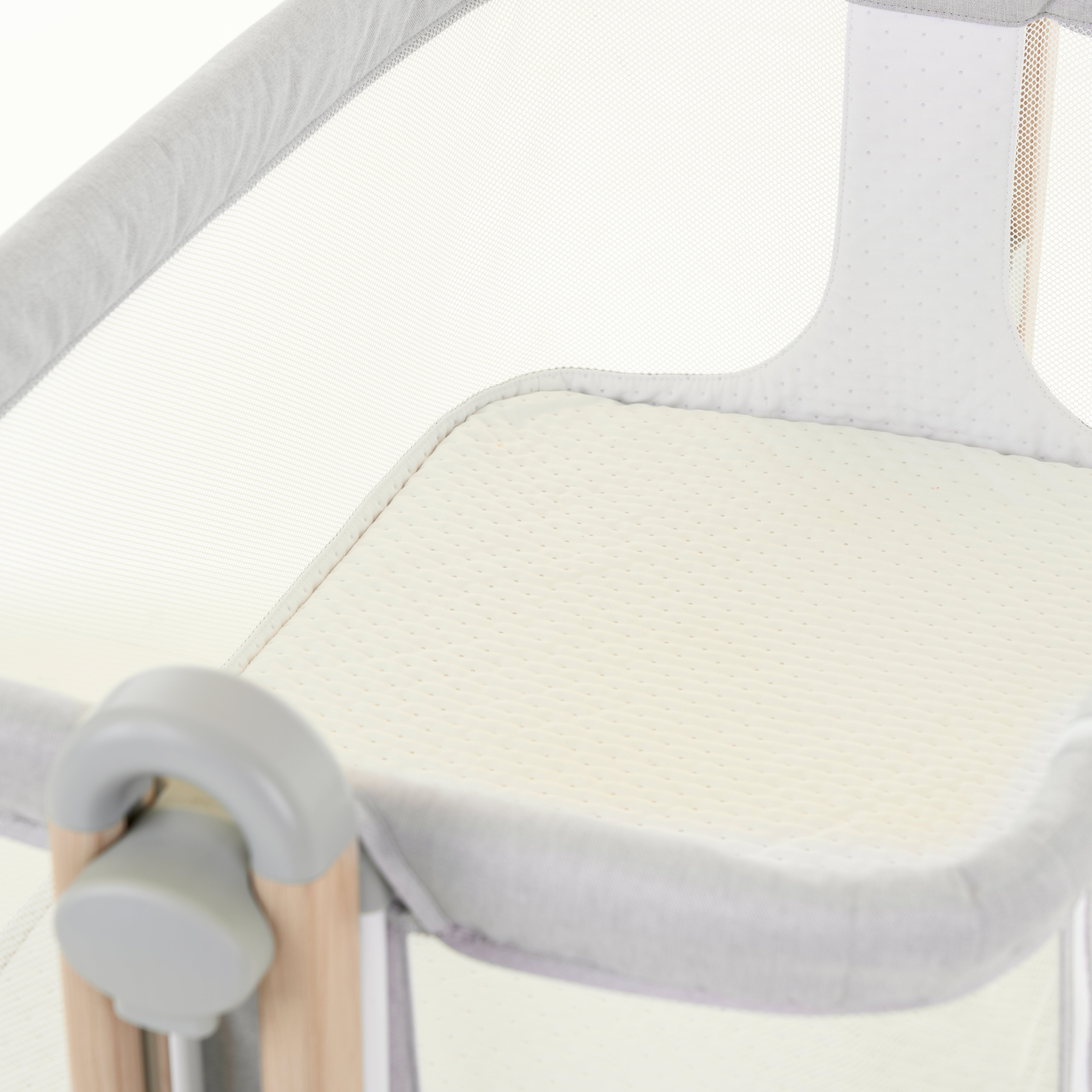 With its soft grey fabric, breathable materials, and adjustable features, it blends seamlessly into your home while making sure you and your baby can rest a little easier.