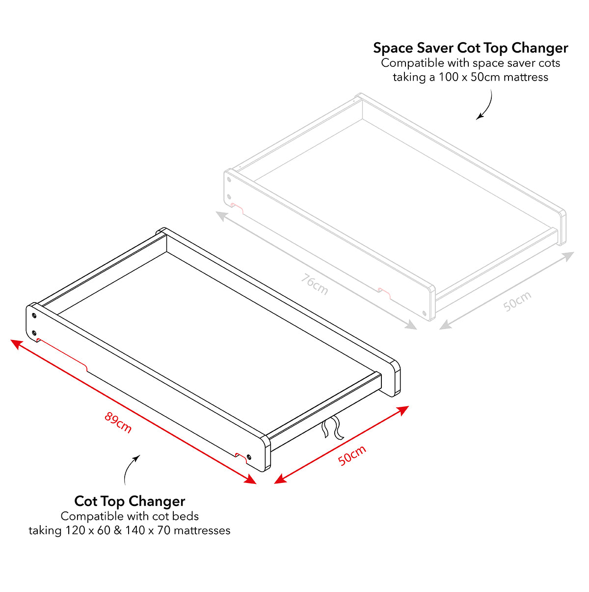 Cot Top Changer Measurements