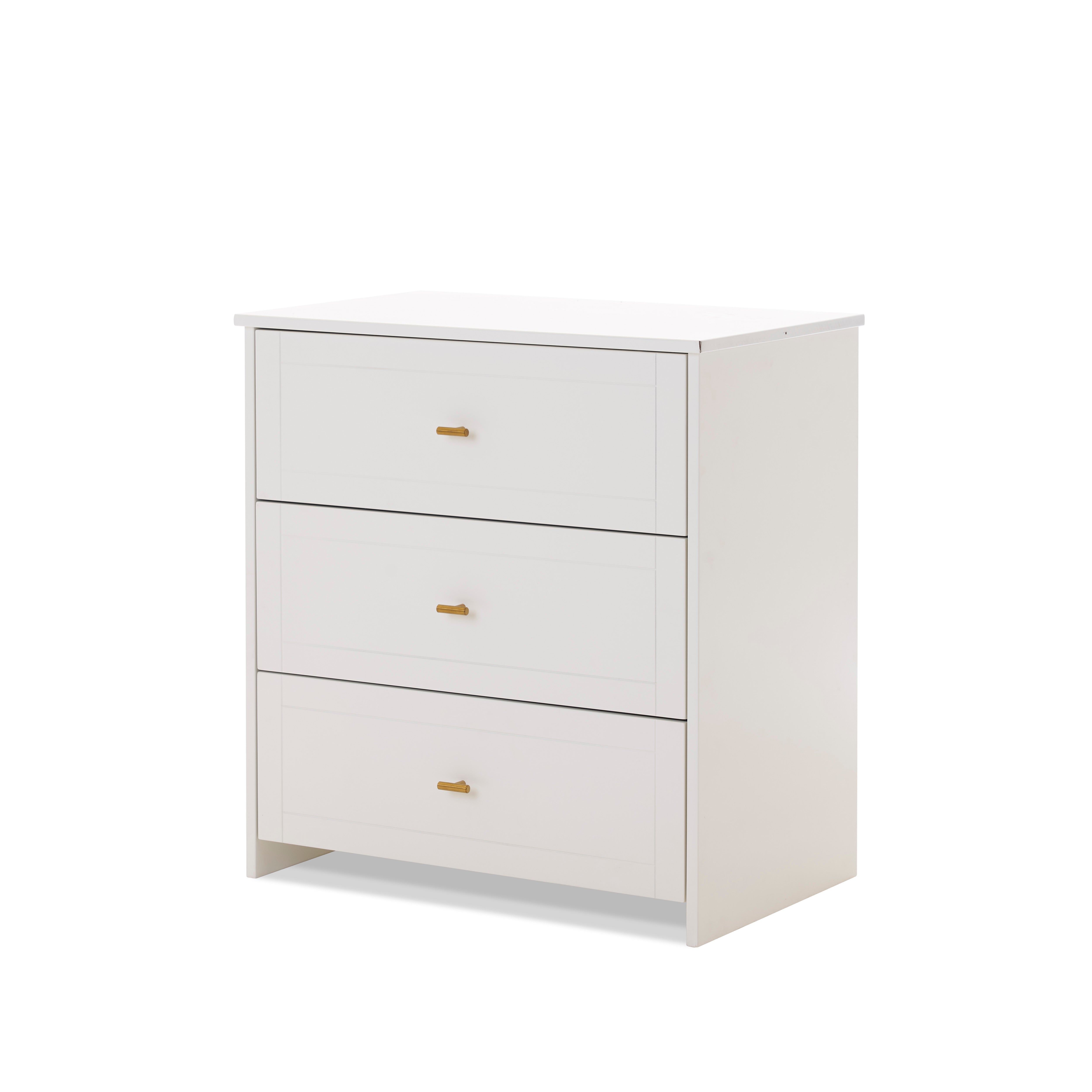 - Changing unit has 3 drawers with gold T bar handles