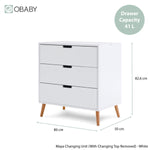 The Maya changing unit is the perfect storage companion, featuring three 34L capacity drawers with recessed handles that enable you to easily put away and quickly locate your little one’s belongings. On top of the unit is a changing area capable of fitting a changing mat up to 80 x 46.5cm. Once the changing area is no longer required it can be removed to create a stylish, flat-top chest of drawers that can be used for years to come.