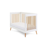 Featuring the same aesthetic and high-quality finish of the regular sized cot bed, the Maya Mini cot bed means families with a more compact nursery do not have to compromise when looking for a space-saving alternative. The top position of the three height-adjustable mattress base allows you to put down your baby with less pressure and strain applied to your back and as they develop and find their feet, you can maintain their safety by lowering the base. When your little one is ready to begin their transition, the included safety rail will provide reassurance and familiarity during an often daunting time and once they are used to their “big bed” this can be simply removed to create a stylish toddler bed.