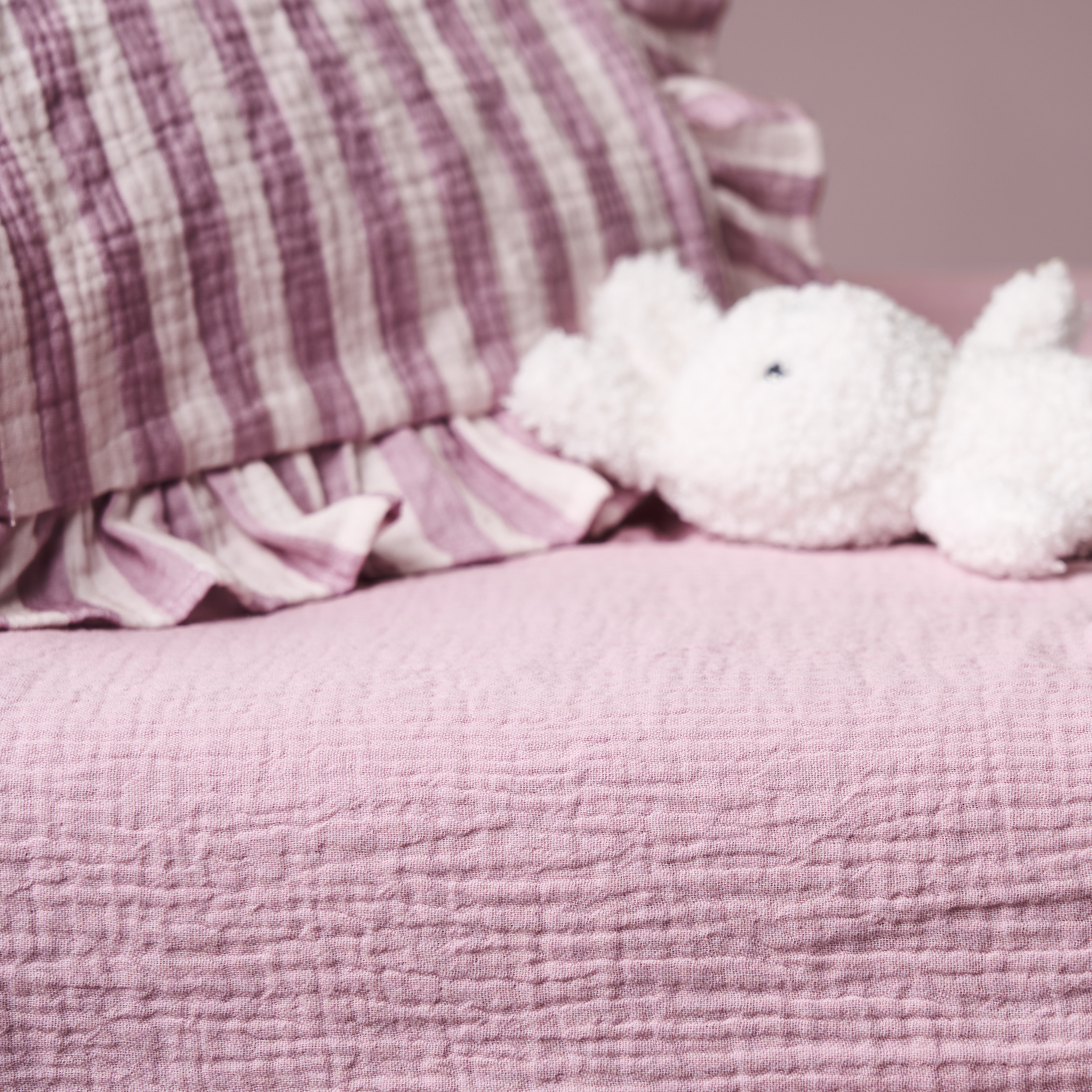 Brighten your nursery with this berry stripe muslin cot bed fitted sheet. Crafted from soft, breathable muslin cotton, it offers everyday comfort while the classic stripe design adds charm and personality. Designed for 140 × 70 cm mattresses, it’s a practical and stylish nursery essential.