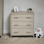 The Nika changing unit is a piece of furniture that can be used for years to come. Three large 32L capacity drawers offer plenty of space for changing essentials, toys and your little one’s precious possessions. All three drawers feature two brushed metal handles and glide on smooth runners allowing you to easily open them with either hand.