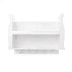 Its two-shelf construction offers plenty of space for your little one’s precious keepsakes, with the top shelf featuring a front lip for belongings extra safe. 5 wooden hanging pegs beneath the shelf providing extra hanging space for regularly used items. The Stamford shelf maintains the same elegant sleigh design as the rest of the Stamford collection making it the perfect finishing touch to any nursery.