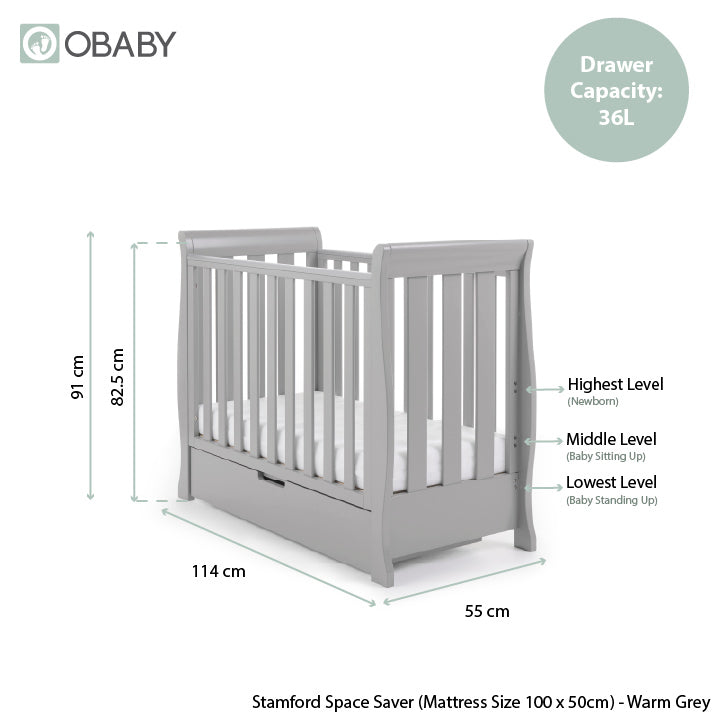 - Requires an Obaby 100 x 50cm mattress, available separately